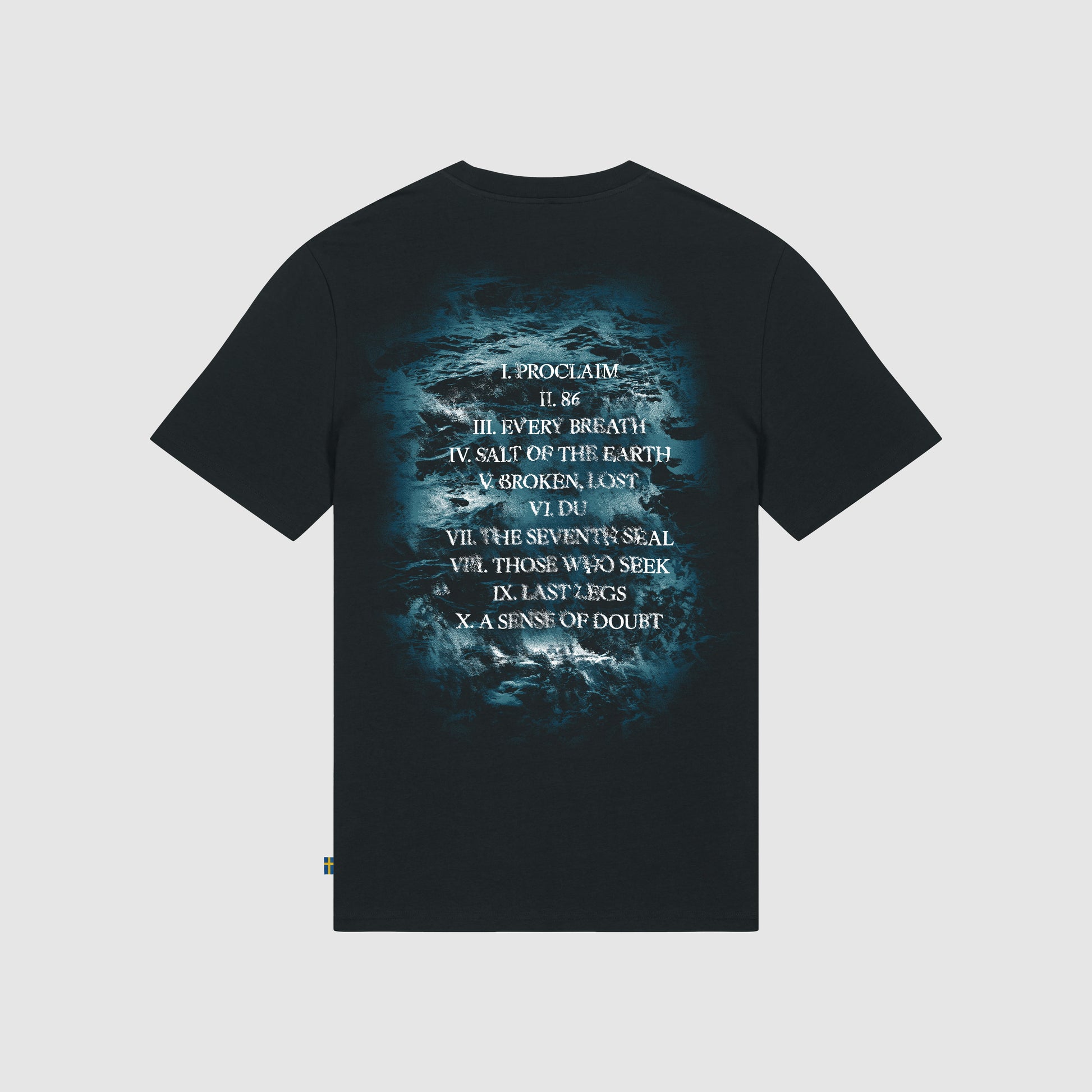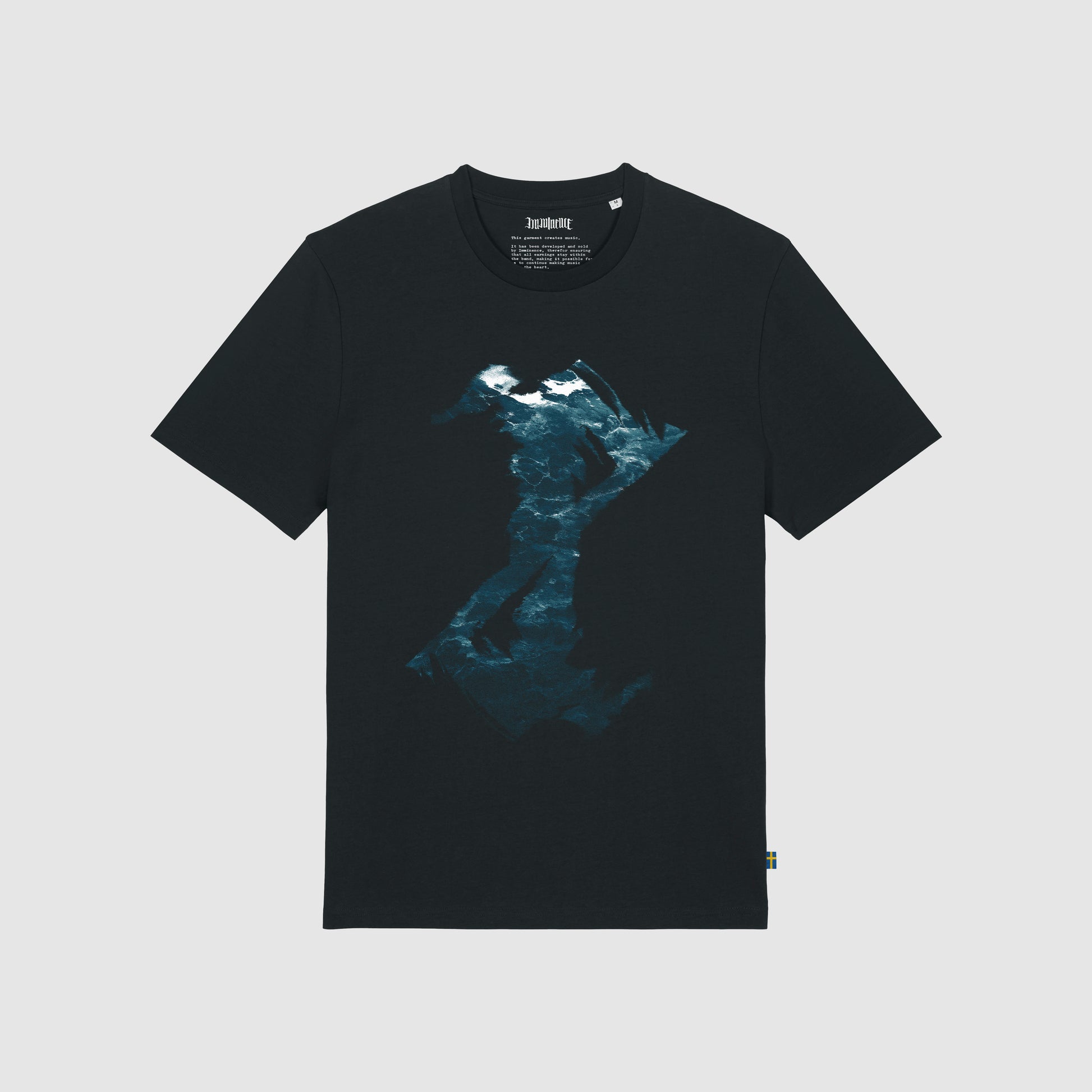 Black, organic Imminence T-shirt inspired by the album The Reclamation of I. Featuring a front print of the album artwork; a large back print of the tracklist in the ocean; an inside nape manifesto and a woven Swedish flag tag.