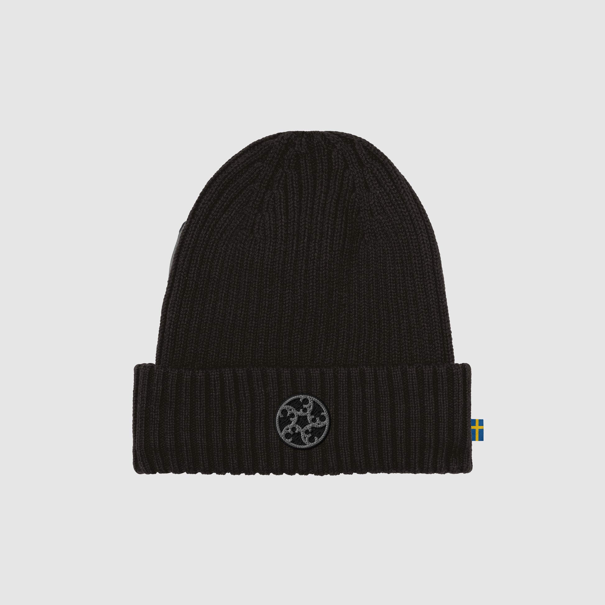 One-size organic, double layer knit black beanie featuring an embroidered Imminence The Black logo on the front and a woven Swedish flag tag.